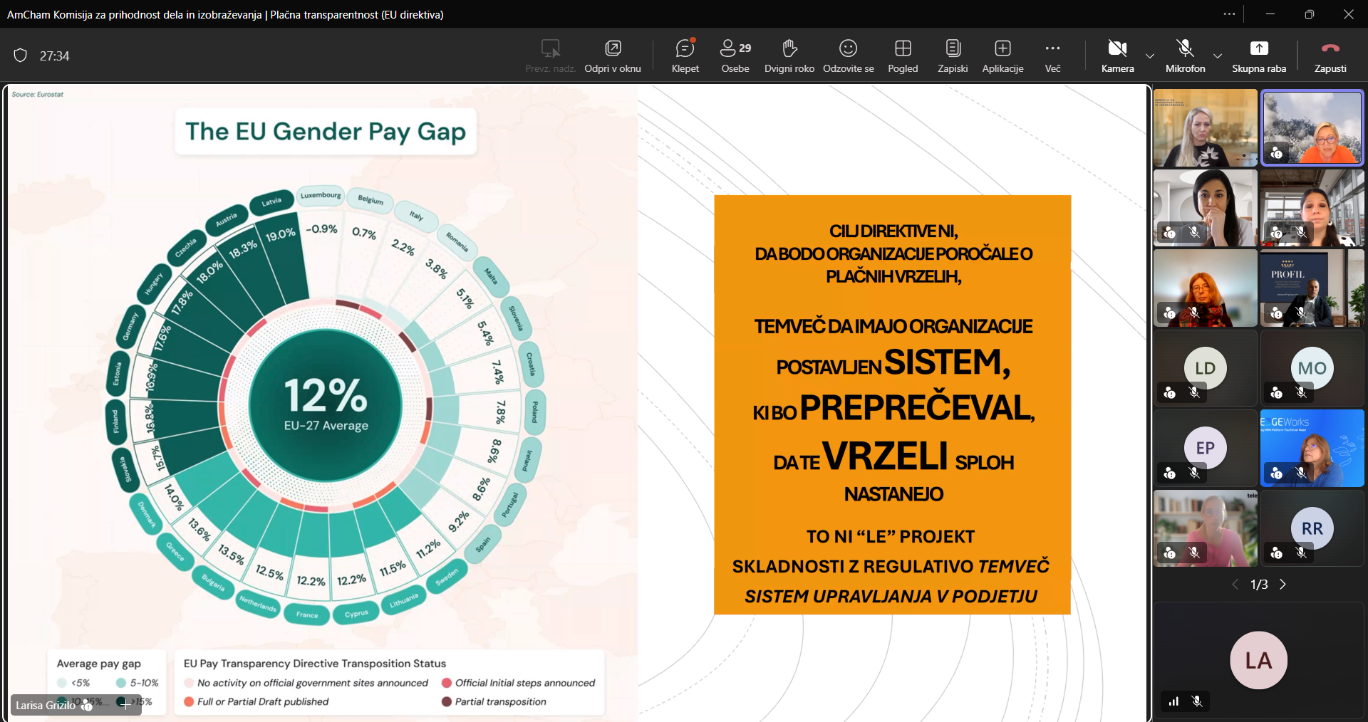 We were joined by two outstanding speakers: Ms. Tatjana Strojan from the Ministry of Labour, Family, Social Affairs and Equal Opportunities and Larisa Grizilo from THERA svet d.o.o., who approached the topic from two key perspectives—regulatory and practical.